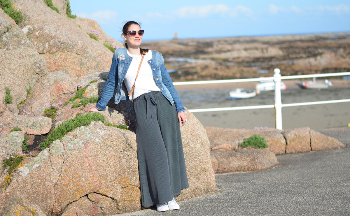 Um den maritimen Look noch weiter zu ziehen, habe ich mich bei der Hose für die Farbe Weiss entschieden. Diese Stoffhose von Please ist eine meiner Lieblingshosen, die ich schon sehr lange im Kleiderschrank beheimate. Sie hat einen tollen leichten Boyfriend-Schnitt und kaschiert trotz der heiklen Farbe Weiss kleine „Problemzönchen“ ganz gekonnt. Zudem ist sie durch die Ziernähte auch nicht ganz so heikel bei leichtem Schmutz. Ein oder zweimal hochgekrämpelt sieht sie doch wirklich einfach toll aus!